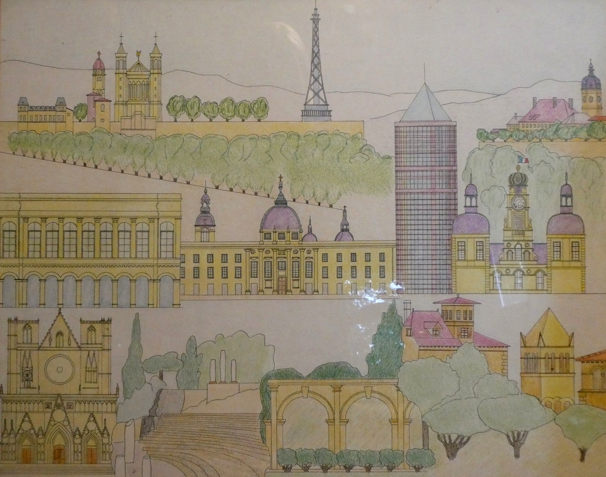 Je me suis aussi essayé au dessin, comme ce grand format représentant ma vision de la ville de Lyon que j'ai réalisé aux crayons aquarelle et à l'encre de Chine.