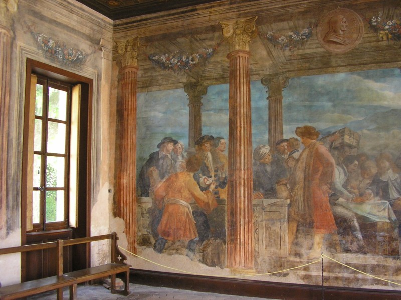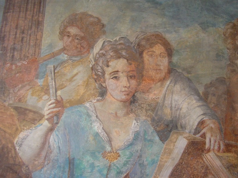 Non seulement mécène, le célèbre négociant était aussi un humaniste comme en témoigne les scènes représentées sur la paroi nord, la révolution scientifique et intellectuelle jouxte un concert improvisé et une conversation littéraire. Parfois des visages comme celui de cette jeune femme nous fixe accrochant notre regard. Ils ont tellement de choses à nous raconter...