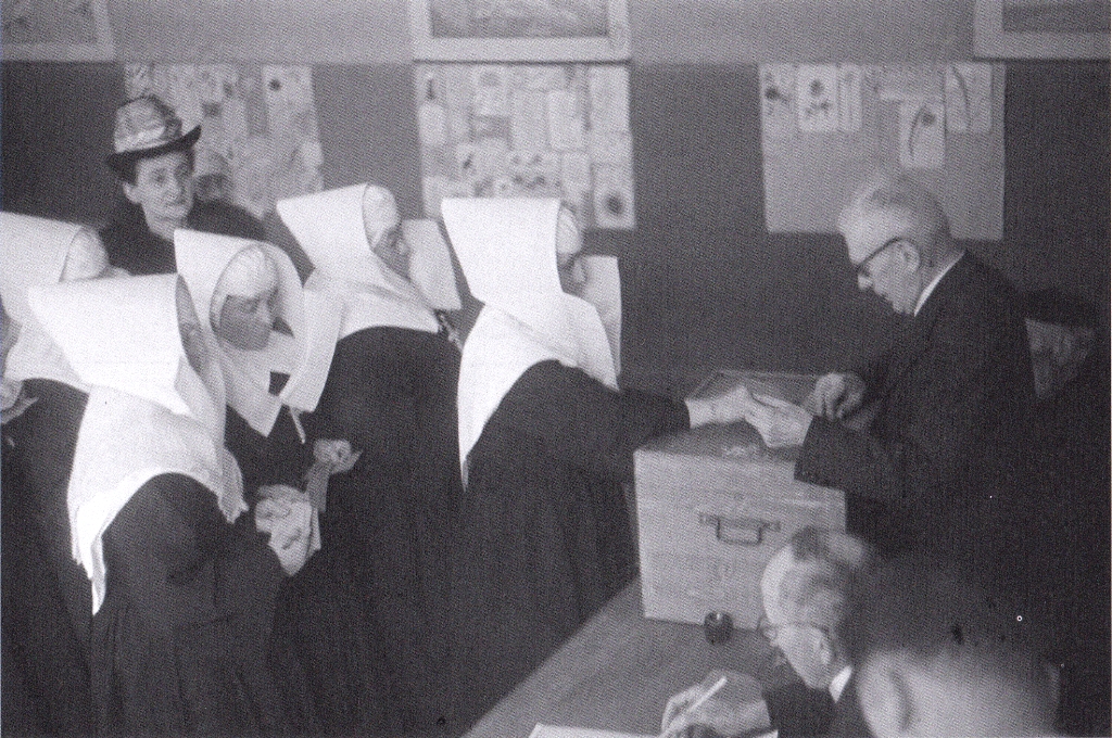 Des recrutements de sœurs hospitalières auront encore lieu dans la première moitié du XXème siècle. Quelques photos prises dans la chapelle de l'Hôtel-Dieu témoignent du cérémonial de la « croisure » et la « prise d'habit ». Et c'est paradoxalement, en ce siècle qui a vu la séparation de l'Église et de l'État en 1905, que la communauté va se rapprocher de l'autorité religieuse. Le Cardinal Maurin en 1937 écrit : « Il existe aux HCL des femmes portant de temps immémorial un costume spécial, vivant comme des religieuses mais sans avoir prononcé de vœux. Il n'existe aucun texte canonique constatant leur existence … toutefois ce groupement n'a pu s'établir sans l'approbation des archevêques successifs de Lyon … ». On retrouve à travers ces propos le désir manifeste de l'Église de Lyon d'imposer son autorité depuis des siècles sur cette communauté.