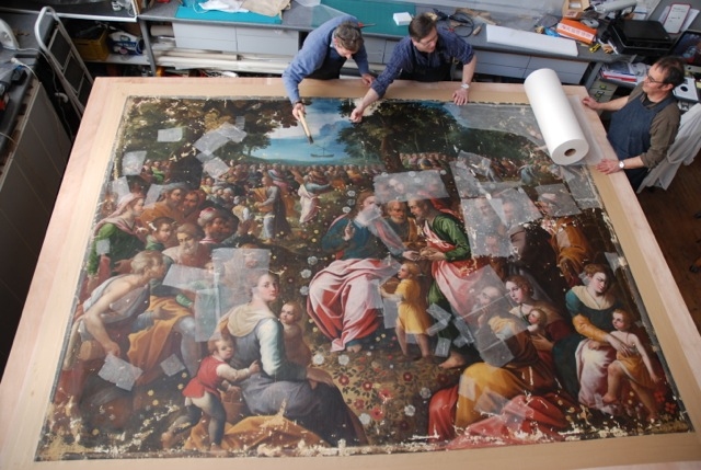 En mars 2011, la ville de Valence a lancé un marché pour la restauration de quatre grandes peintures représentant des scènes de la vie du Christ. Le CICRP (Centre Interrégional de Conservation et de Restauration du Patrimoine) est retenu et la restauration, financée par la Fondation BNP Paribas dans le cadre de son programme « BNP Paribas pour l'Art », est confiée à l'atelier Vicat-Blanc. Datés du début du XVIIème siècle, ces quatre toiles de grand format proviennent du monastère des Récollets de Romans sur Isère. Elles décoraient probablement le réfectoire des moines si l'on en juge par la thématique de la nourriture présente sur chacune d'entre elles : « Jésus tenté par le Démon et servi par les Anges », « La multiplication des pains », « La pêche miraculeuse » et « Jésus et la Samaritaine ». Ces quatre tableaux ont été achetés par un particulier au début du XXème siècle qui, après les avoir proposé à l'archevêché qui n'avait pas les fonds nécessaires pour les acquérir, les a vendus au musée des Beaux-Arts de Valence en 1911. Ils sont remarquables dans le détail où une foule de choses apparaissent : les architectures, des petits personnages et surtout l'omniprésence de fleurs, de fruits comme les fraises des bois.